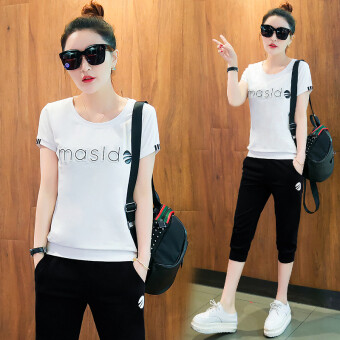 Best Buy Summer New style 00 after girls junior high school student GUIhoney secret sister sports short-sleeved t-shirt two piece suitpantyhose pants tide ([622 models white]) in Malaysia
